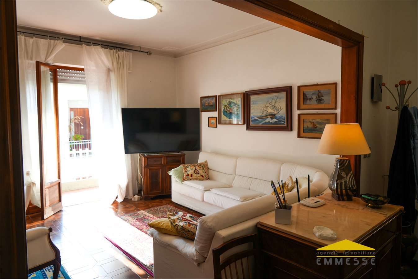 L'appartamento, sito al primo piano di un edificio dei primi anni '80 di soli tre piani si compone di ingresso su ampio soggiorno con balcone lato Viareggio (Levante), cucina abitabile con balcone lato Carrara (Ponente), tre comode camere da letto e bagno finestrato con vasca.
